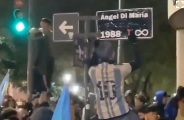 El cruce que antes se llamaba Boulevard y Rivadavia, ahora los simpatizantes decidieron que lleven los nombres de Lionel Messi y Ángel Di María, ambos rosarinos y emblemas del conjunto dirigido por Lionel Scaloni, oriundo de la ciudad de Pujato.
