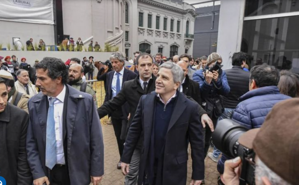 El ministro de Economía, Luis Caputo, el diputado nacional de La Libertad Avanza, José Luis Espert, el secretario de Agricultura, Ganadería y Pesca, Sergio Iraeta y el secretario de Coordinación y Producción, Juan Pazo, se reunieron este martes con los presidentes de las cuatro entidades de la mesa de enlace (CRA, SRA, ConinAgro y FAA) en la 136° Exposición Rural de Palermo.