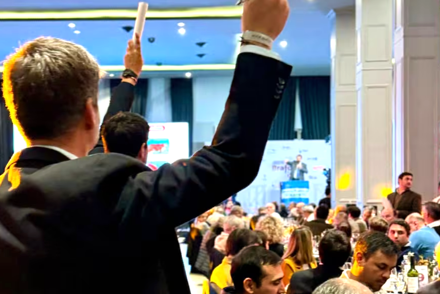 Juan Pedro Colombo, titular de la empresa, y Hernán Vasallo, ambos martilleros, iniciaron la subasta de embriones para luego pasar al núcleo de la venta de toros y vientres destacados. Los animales estaban en un lugar próximo al Central y desde allí se transmitía por TV a las pantallas gigantes del restaurante.