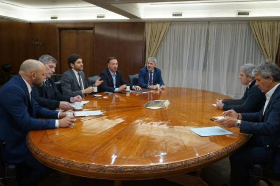 El gobernador, junto con los ministros de Economía, Pablo Olivares; de Desarrollo Productivo, Gustavo Puccini; y de Obras Públicas, Lisandro Enrico, se reunieron este jueves en Buenos Aires con el ministro de Economía de la Nación, Luis Caputo.