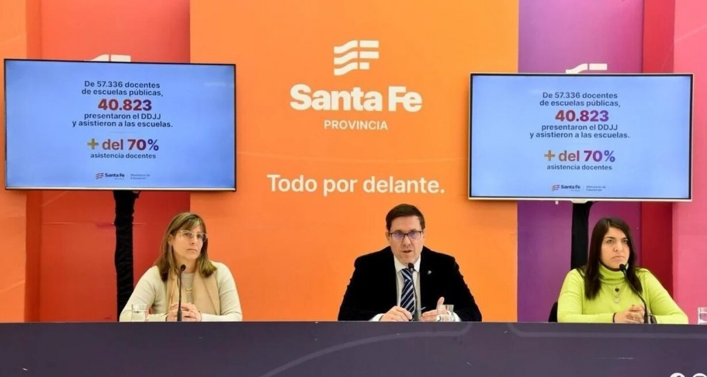 Por su parte, la subsecretaria de Innovación e Integración Digital, Ana Bacolla, detalló: "Al relevamiento lo hicimos a través del sistema Mi Legajo, que es el mismo que utilizamos en las oportunidades anteriores" y en ese sentido informó: "El universo total de los docentes que debían llenar la declaración jurada son 57.336 personas y hasta el momento relevamos que presentaron su declaración jurada 40.823 trabajadores. Estos números, vistos en porcentaje de adhesión, representan una adhesión al paro del 28,8 % y una no adhesión del 71,2 %".