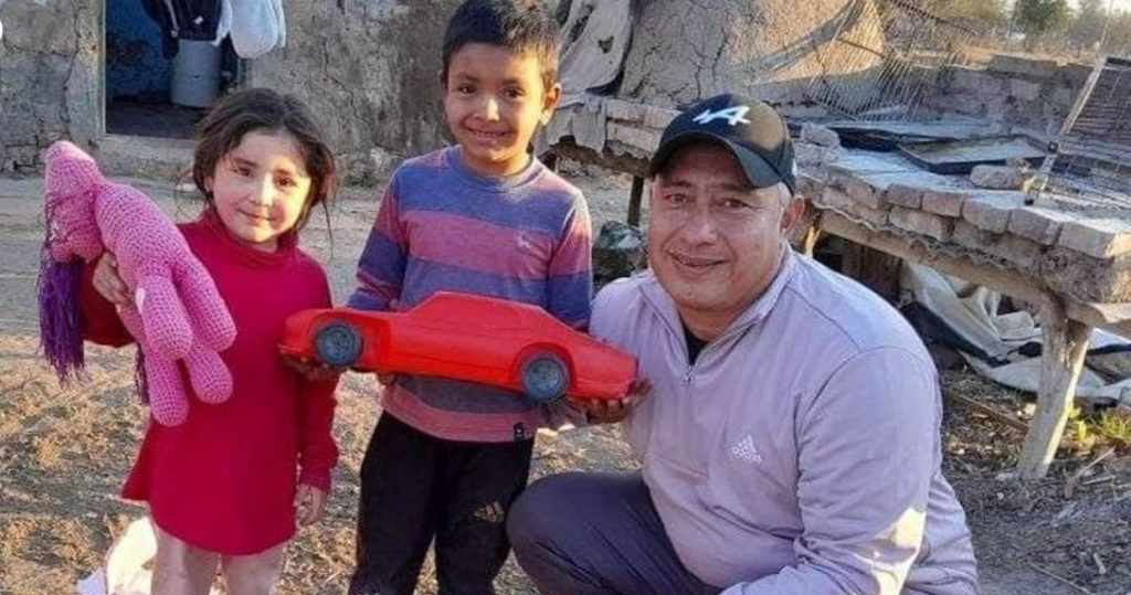 Los nenes recibieron los juguetes de manos del impulsor de la colecta solidaria. Crédito: Gentileza