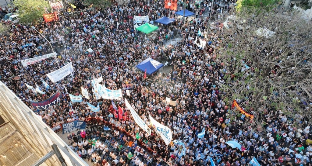 La movilización se realizó en todo el país, con epicentro en Buenos Aires, y fue convocada por el Frente Sindical de Universidades Nacionales, que agrupa a gremios docentes y no docentes, por la Federación Universitaria Argentina (FUA), en la que están estudiantes, y el Consejo Interuniversitario Nacional (CIN), que reúne a los rectores.
