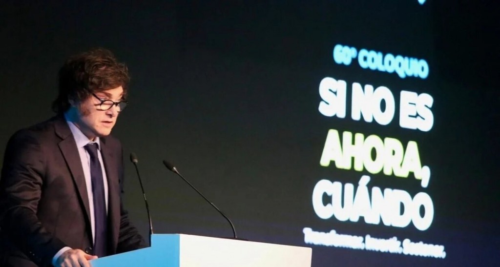 El mandatario habló 1 hora y 11 minutos ante el Coloquio de Idea, con un tono inusualmente moderado, repasando logros fiscales y cuasifiscales, y en especial la baja de la inflación. Sostuvo que "el RIGI ya tiene anuncios por más de 50 mil millones de dólares y muchas empresas ya están invirtiendo, y muchas de las empresas están colocando deuda por debajo del 8% en dólares (Pampa en 5,75%). Prepárense porque se viene una tremenda oleada de dólares desde ese lugar".
