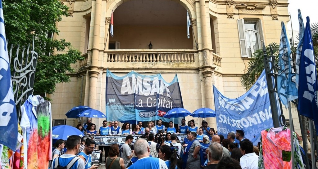 Delegados del gremio de la docencia pública, Amsafe, se manifestaron este miércoles frente a la sede de la Regional IV de Educación, ubicada en la esquina de Balcarce y Avellaneda. La nueva jornada de protesta tuvo como propósito reclamar a la cartera educativa por el llamado a concursos de titularizaciones, traslados y una nueva convocatoria a paritarias.