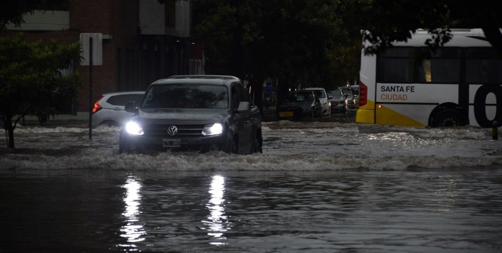 El agua acumulada en las calles de Santa Fe. Archivo El Litoral