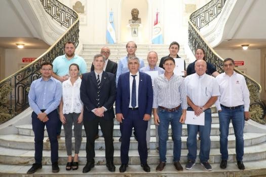 Se firmaron convenios con Laguna Paiva, San Genaro, Franck, San Carlos Norte y Santa Rosa de Calchines, para la adquisición de vehículos, retroexcavadoras, motoniveladoras, transformadores, tractores, motosierras y motoguadañas.