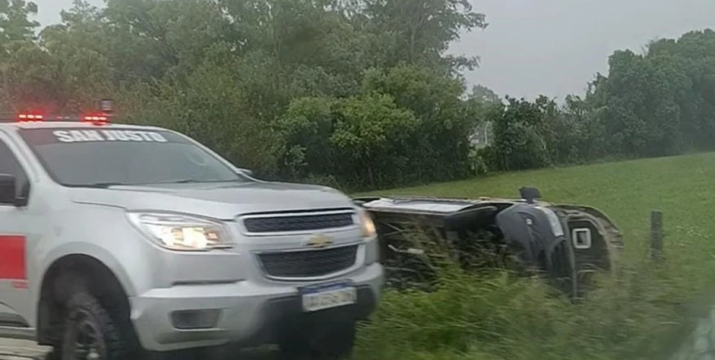 Este domingo en medio de una lluvia intensa una ambulancia de la ciudad de San Justo volcó sobre la Ruta Nacional 11, y su intersección con la provincial 62, a la altura de la localidad de Emilia.