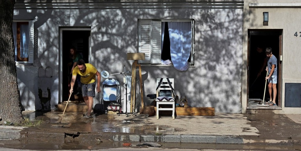 People clean up outside the Jose Penna Interzonal Hospital, after a flood struck the city of Bahia Blanca, in the province of Buenos Aires, Argentina March 9, 2025. REUTERS/Juan Sebastian LobosHay 1.450 personas entre autoevacuados y evacuados. Credito: REUTERS/Juan Sebastian Lobos