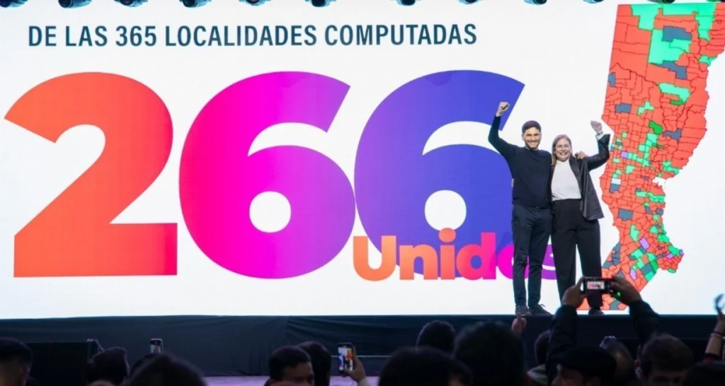 De las 304 localidades computadas hasta el momento de su discurso (19.30), Unidos ganaba en 247, mientras que 42 quedaban para el peronismo y 4 para La Libertad Avanza. Aún restaba el cómputo final en unas 60 localidades.
