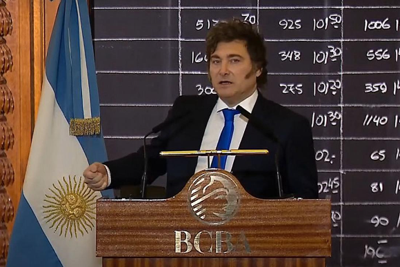 El presidente habló desde la Bolsa de Comercio. "En octubre ‘La Libertad Arrasa’”, aseguró.