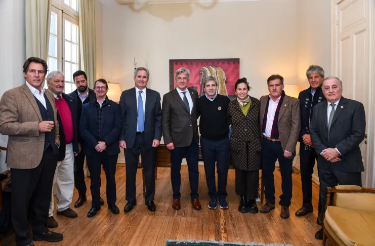 Asimismo, Caputo, junto a los secretarios de Finanzas, Pablo Quirno; de Hacienda, Carlos Guberman; de Coordinación de Producción, Pablo Lavigne; de Agricultura, Ganadería y Pesca, Sergio Iraeta; y el titular de la Agencia de Recaudación y Control Aduanero (ARCA), Juan Pazo; mantuvo un encuentro con el presidente de la Sociedad Rural Argentina (SRA), Nicolás Pino, en donde intercambiaron miradas sobre la situación que atraviesa hoy el campo argentino y el escenario político y económico actual.