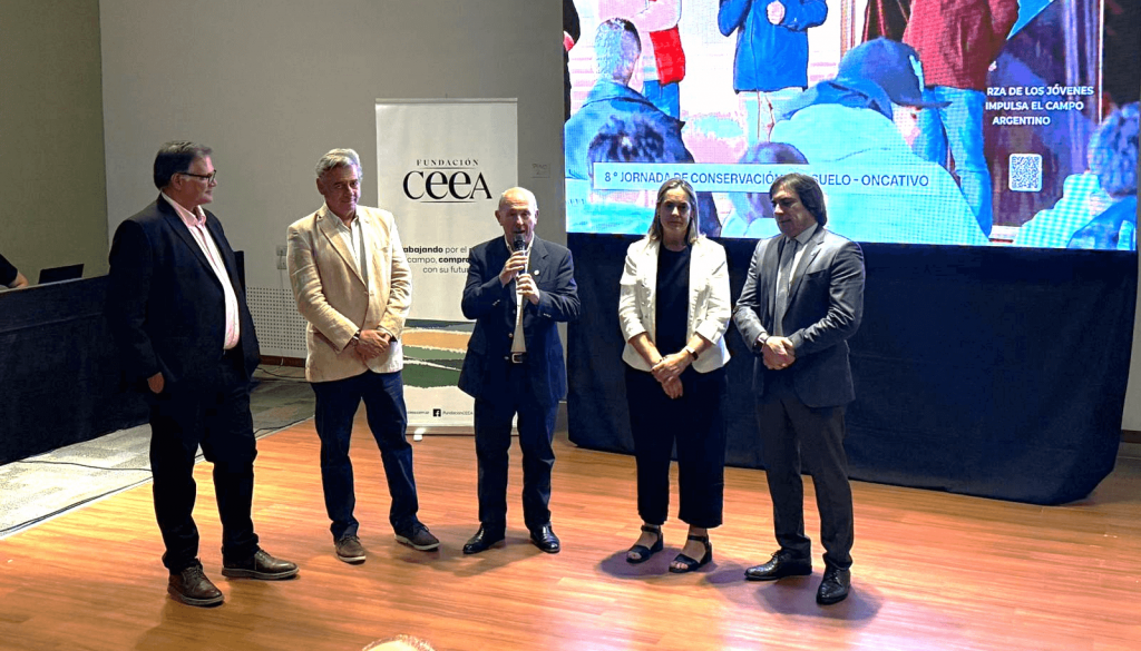 Tras el discurso de apertura del presidente de la Fundación CEEA, Guillermo Vitelli, quien hizo foco en el trabajo público-privado que se realiza en Córdoba y que permite por ejemplo que el 98% de los recursos aportados por el Inmobiliario Rural se destinen a obras y proyectos acordados con el campo, los cuatro referentes de la Mesa de Enlace nacional ofrecieron también sus palabras.