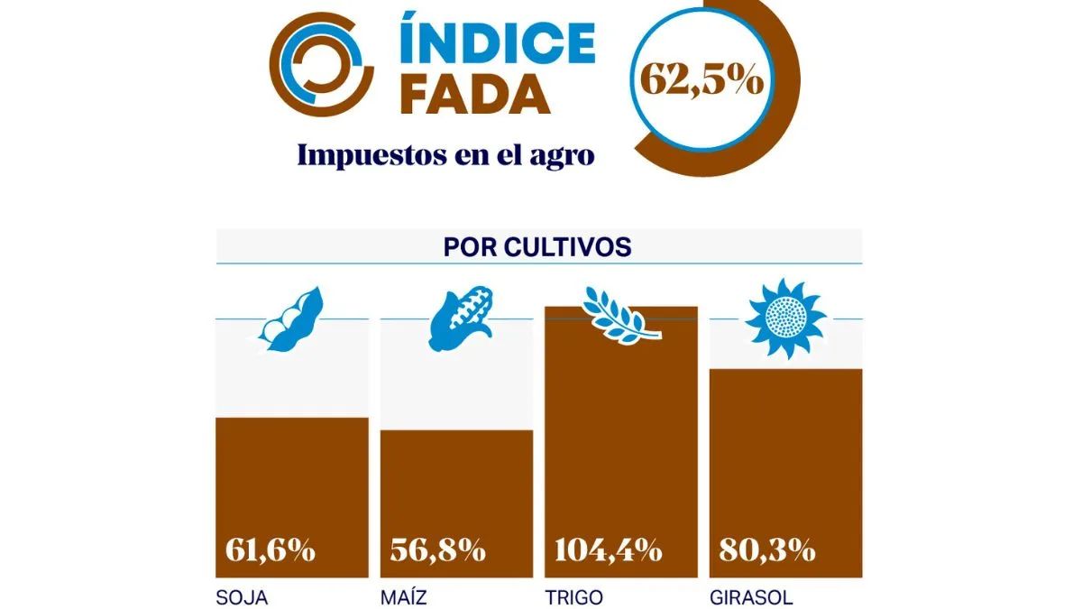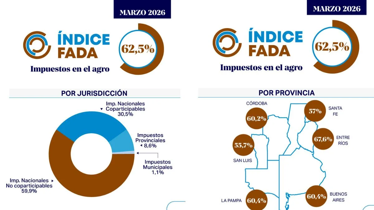 Según el último informe de Fundación Agropecuaria para el Desarrollo de Argentina (FADA), el Estado se queda con $62,5 de cada $100 generados por una hectárea agrícola, considerando impuestos nacionales, provinciales y municipales. La economista jefa de la entidad, Nicolle Pisani Claro, advirtió que “esta edición está, más que nunca, marcada por la coyuntura nacional e internacional”, al señalar el impacto de la suba de costos, especialmente del combustible, y la menor rentabilidad.